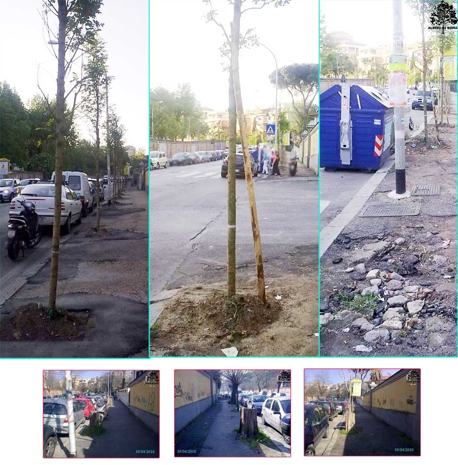 Via Folchi (Ospedale Spallanzani), quartiere XI Portuense. Una buona notizia, gli alberi sono stati ripiantati lungo tutta la via.