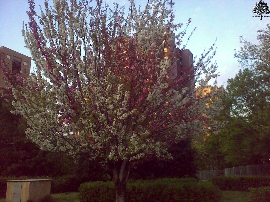 Via Igino Giordani, tra Verderocca e Colli Aniene. Ciliegio mezzo selvatico e mezzo ornamentale. Data: 14 Aprile 2010.