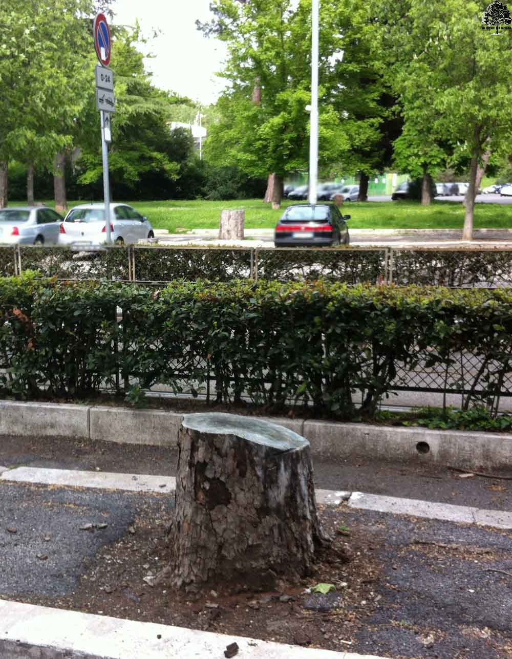 Viale Tiziano presso il civico 5. Ne mancano monti altri lungo il viale. Data: 23 Aprile 2012