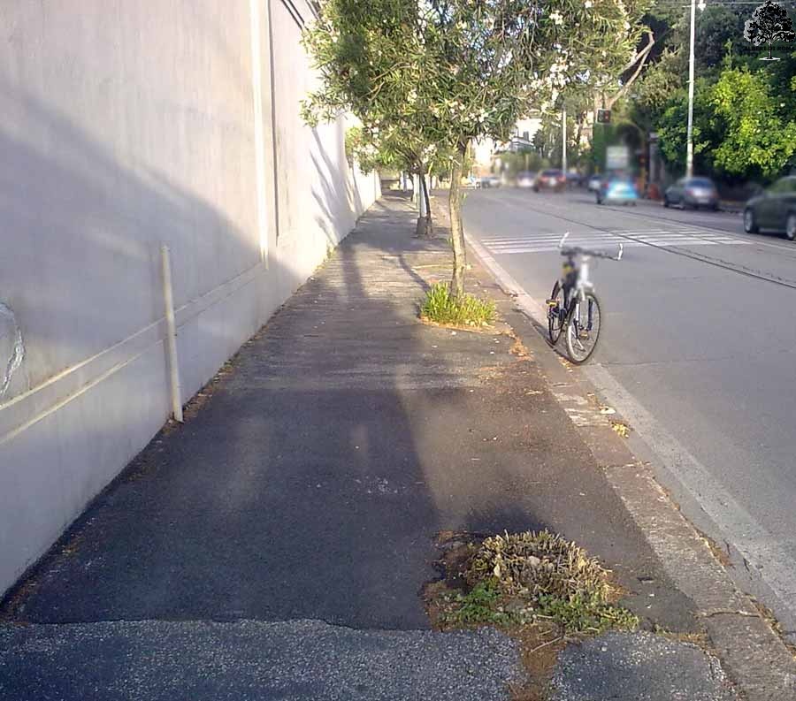 Via Ulisse Aldrovandi venendo da viale Rossini. Ci sono almeno 5 aiuole perse. Data: 15 Maggio 2011.
