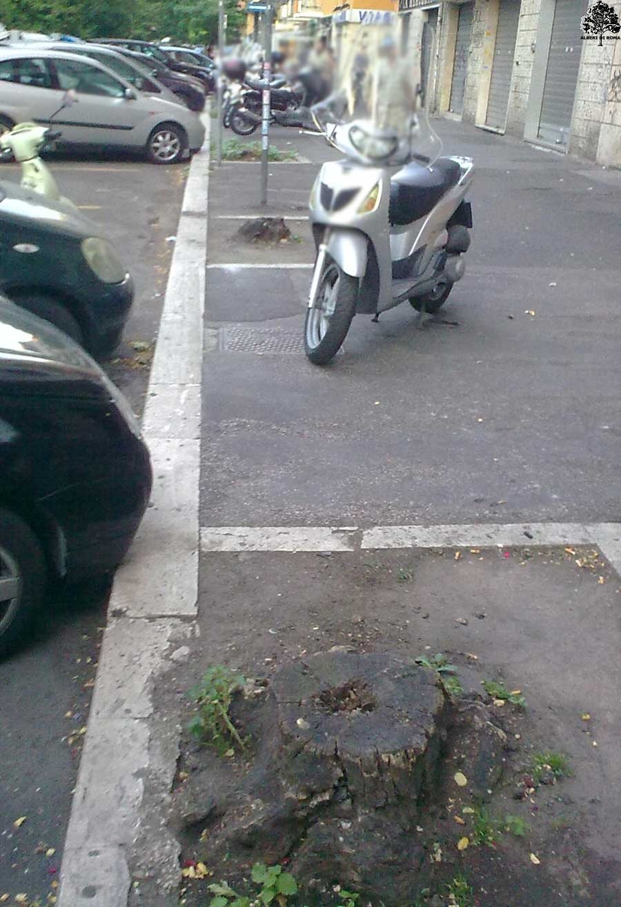 Via Enrico Fermi presso il civico 11, nella foto ci sono almeno tre alberi mancanti. Data: 27 Giugno 2011.