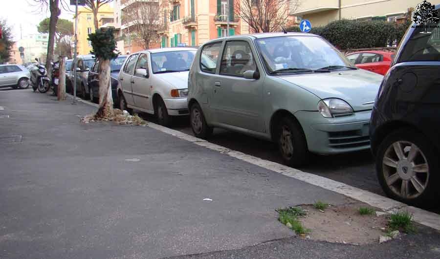 Via Duchessa di Galliera. Data: 5 Marzo 2012. In primo piano un esempio di consumo di territorio, a breve l'aiuola potrebbe essere chiusa per sempre!