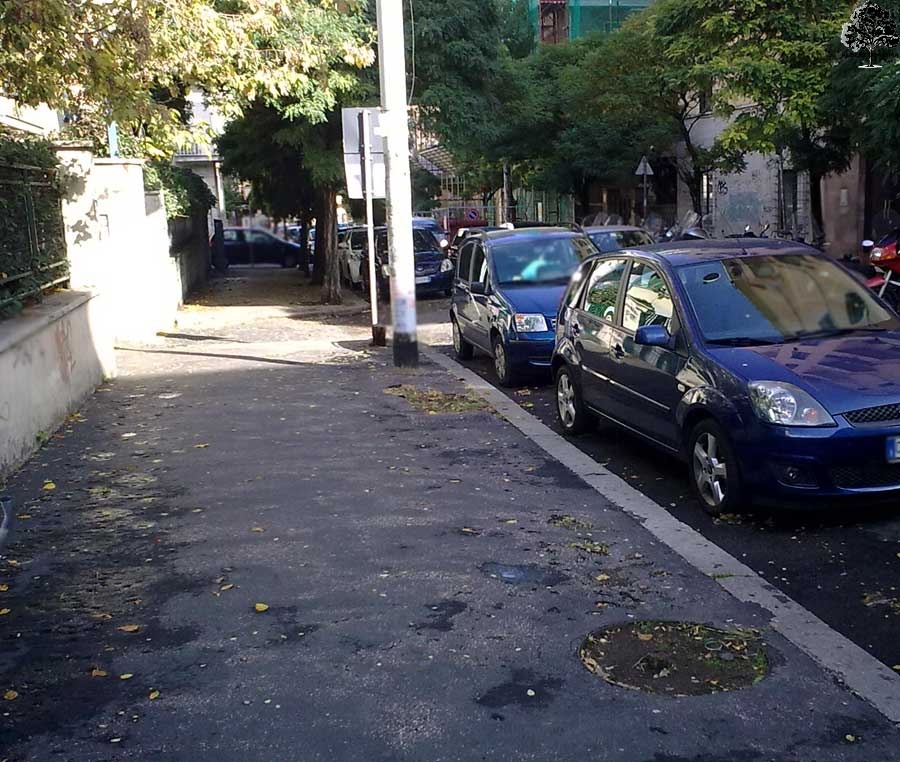 Via Fogliano presso il civico 31. Alberi mancanti e aiuole quasi scomparse, un altro esempio di consumo del territorio. Data: 6 Novembre 2011.