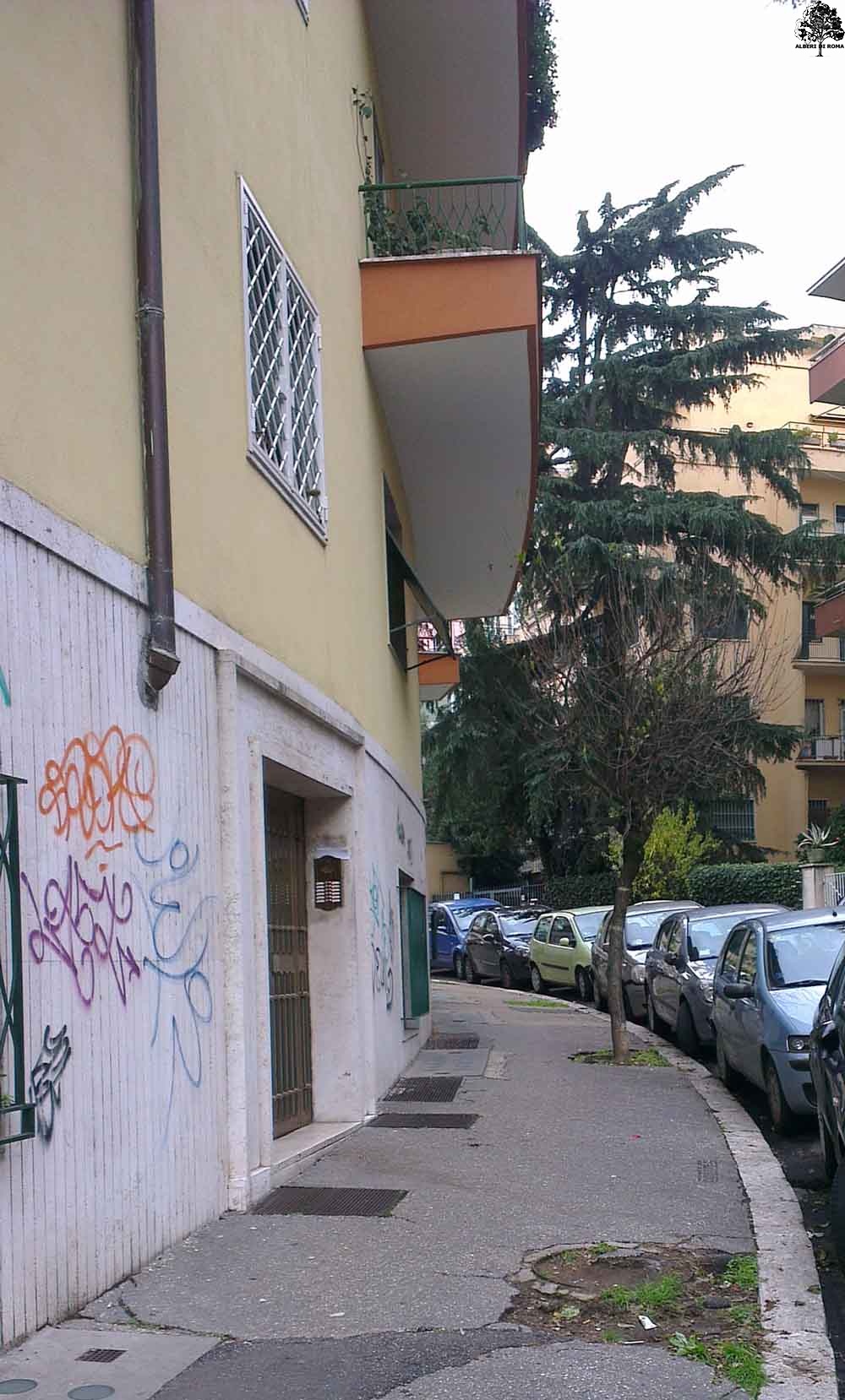 Via Rocca Sinibalda presso il civico 50. In primo piano un'aiuola vuota e poi altre a seguire. Data: 7 Dicembre 2012.
