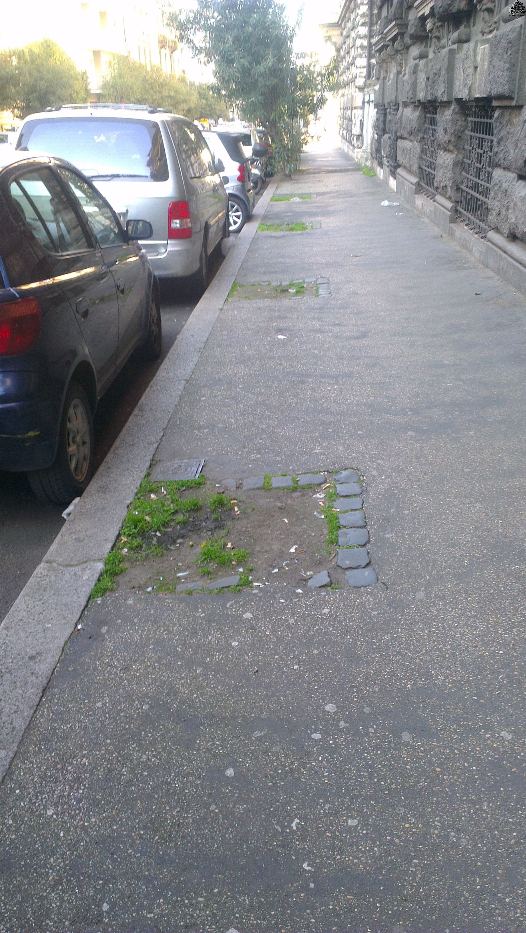 Via Tagliamento, presso il civico 8 molte aiuole vuote. Data: 9 aprile 2015.