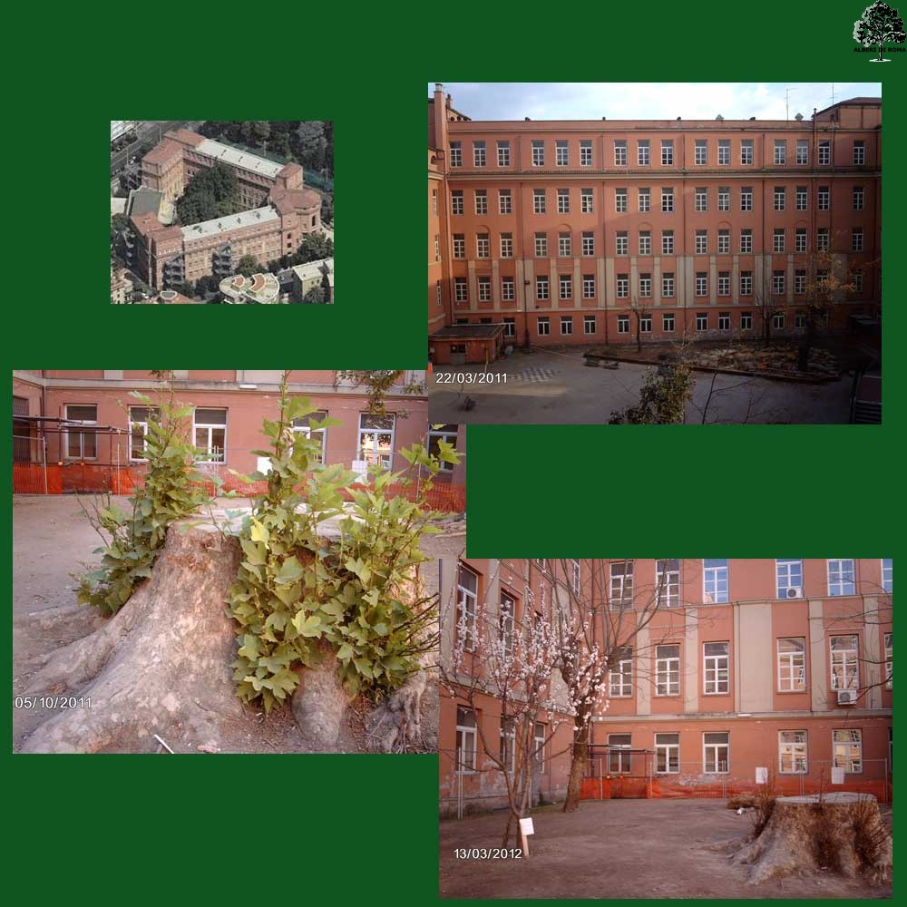 L'anno scorso, il 18 marzo 2011, quando eravamo tutti a casa perchè stavamo festeggiando l'unità d'Italia, sono stati tagliati dei platani della scuola. Le motivazioni sono tante e tutte diverse ma ancora attendiamo una risposta e soprattutto la ripiantumazione di altri alberi.