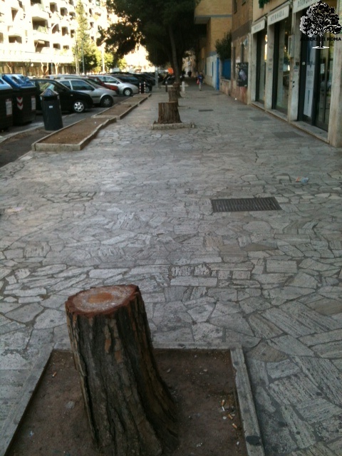 Via Flavio Stilicone presso il civico 255, zona don Bosco - Tuscolano. Perchè sono stati tagliati? Data 29 Marzo 2012.