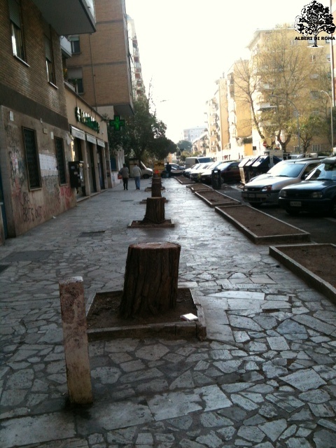 Via Flavio Stilicone presso il civico 255, zona don Bosco - Tuscolano. Perchè sono stati tagliati? Data 29 Marzo 2012.
