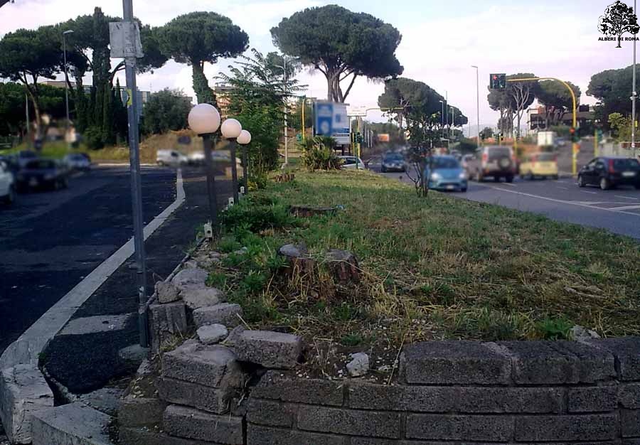 Via Tiburtina presso il civico 1005. Mancano almeno 5 pini. Data: 14 Giugno 2011.