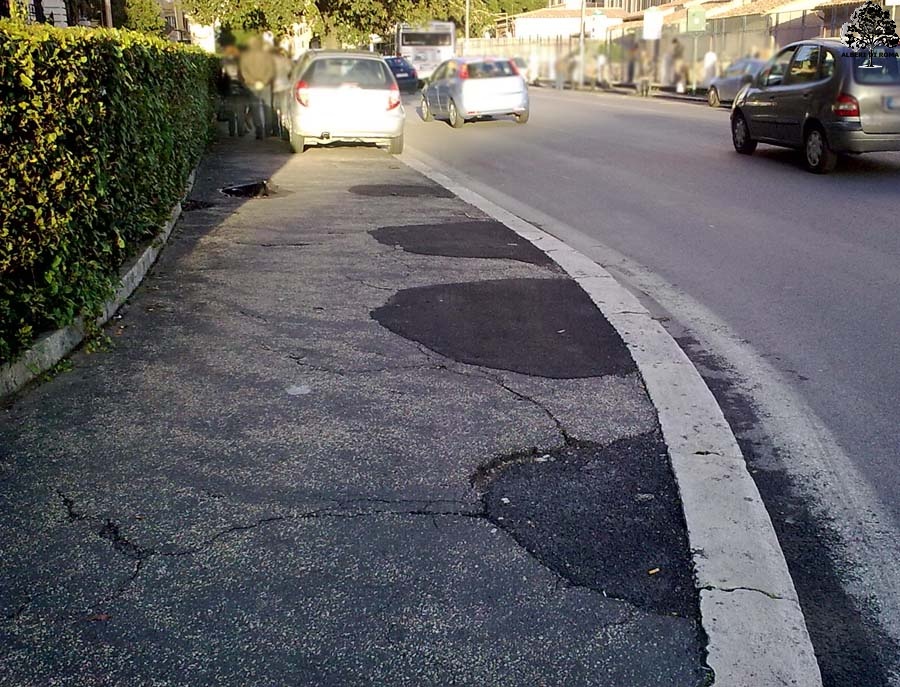 Presso il ministero del Tesoro. Un esempio di consumo del territorio, in primo piano le toppe di asfalto di alberi che difficilmente saranno rimpiazzati. Data: 19 Novembre 2010.