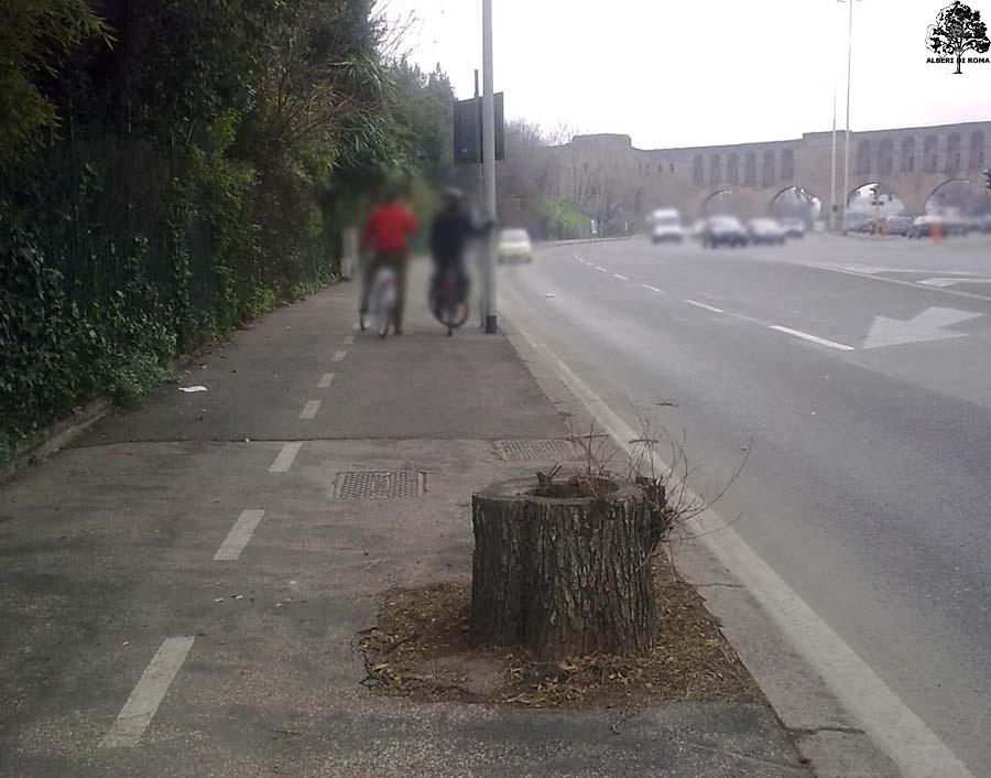 Viale delle Terme di Caracalla, in prossimità dell'omonimo largo. In questo gli alberi caso cedono alla pista ciclabile, "Ubi maior ...". Data: 19 Gennaio 2011.